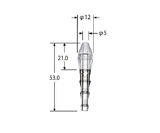 ●ノズルジョイントは内径Φ5~8mmのチューブが接続できる多段階のコネクター形状です。