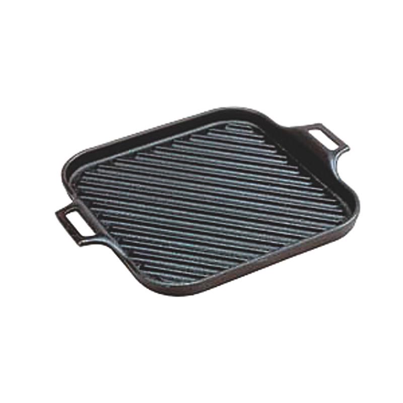 蓄熱性が高く、いったん溜め込んだ熱を簡単には逃がさない。ステーキなど熱さを活かした料理に鋳鉄器は最適鋳鉄器は保温性が高く、温度ムラが少ないことで、料理が一層おいしく仕上がる。現代人に不足がちな鉄分。継続的にお使いになれば鉄分の補給に役立つ。鉄板上に凸の線が走っており、余計な油が肉に戻らない。IH対応。※IHは200V専用。