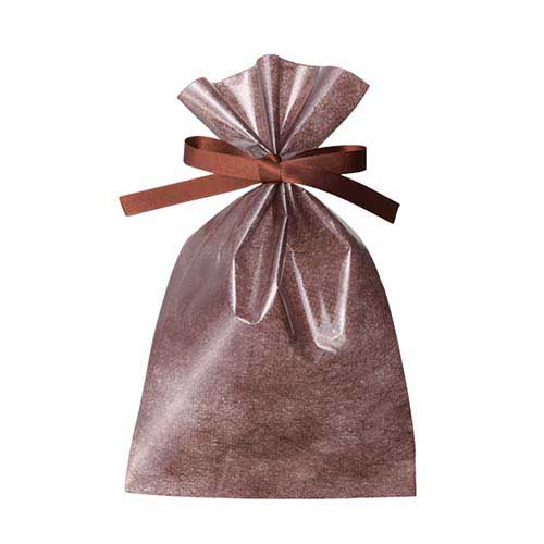 ソフトバッグクリア 2穴リボン巾着 S2 ダークブラウン