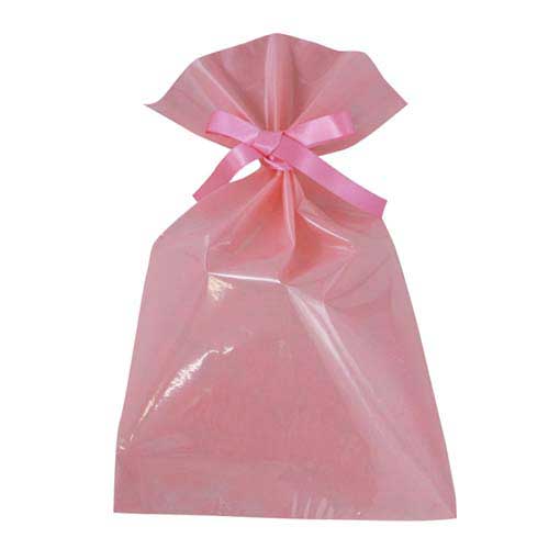 ソフトバッグクリア 2穴リボン巾着 S5 ピーチピンク