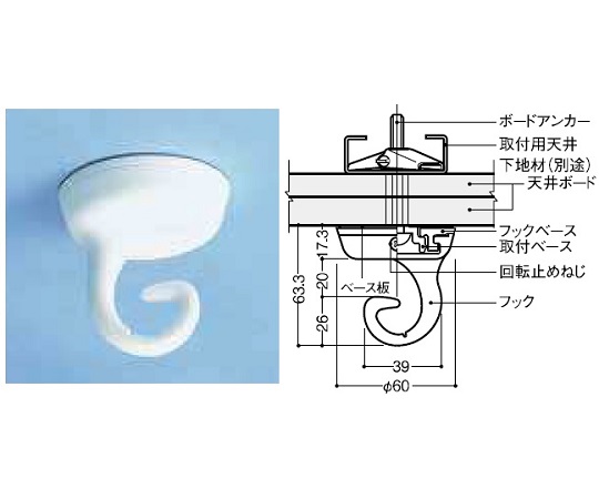 ●ベッド真上の天井に固定して使用するガードルハンガー吊り下げ用フックです。