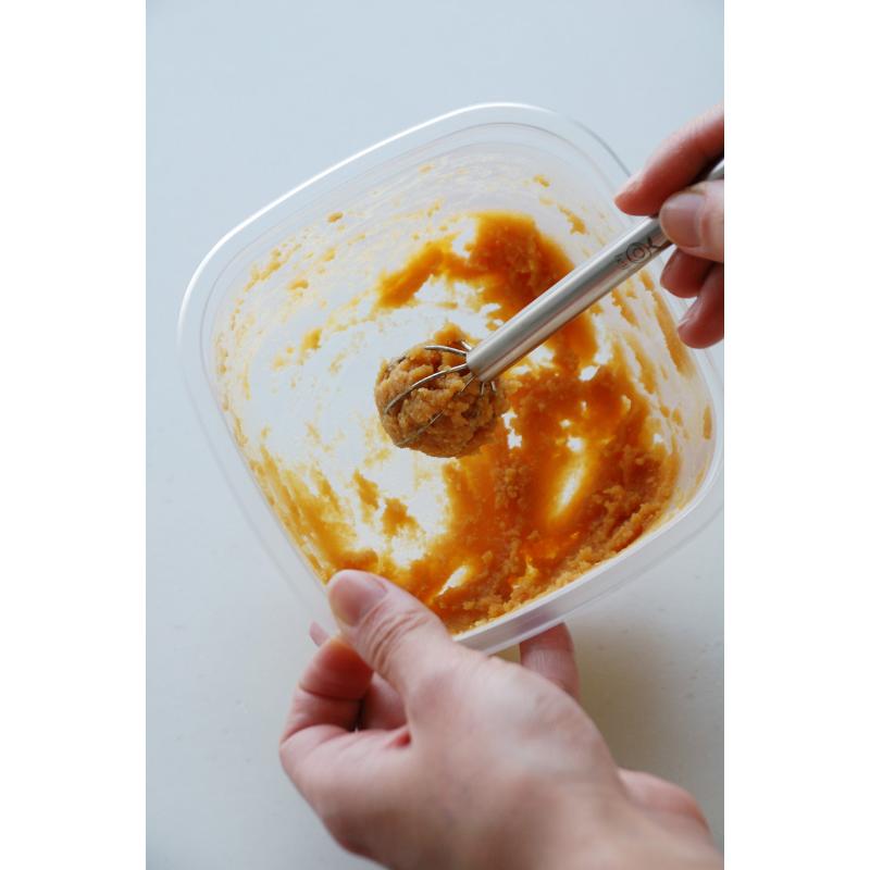 いつもの味が手軽に作れる」計量みそマドラー。お味噌に差して、くるっと回すとお味噌をカンタンに計量でき、そのままお鍋で溶かせます。毎日のお味噌汁をカンタンに一定の味付けで作ることができるので、塩分の取りすぎも防げます。材質:18-8ステンレス品番:054480