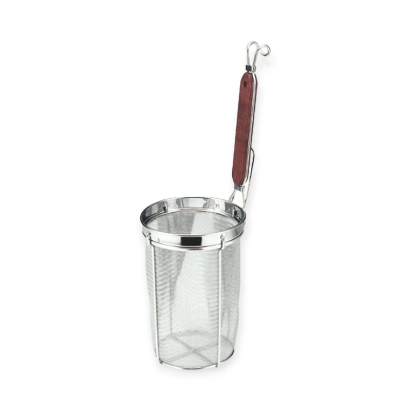 燕三条製。丈夫な18-8ステンレス製。材質:[網]18-8ステンレス、[柄]天然木品番:041151
