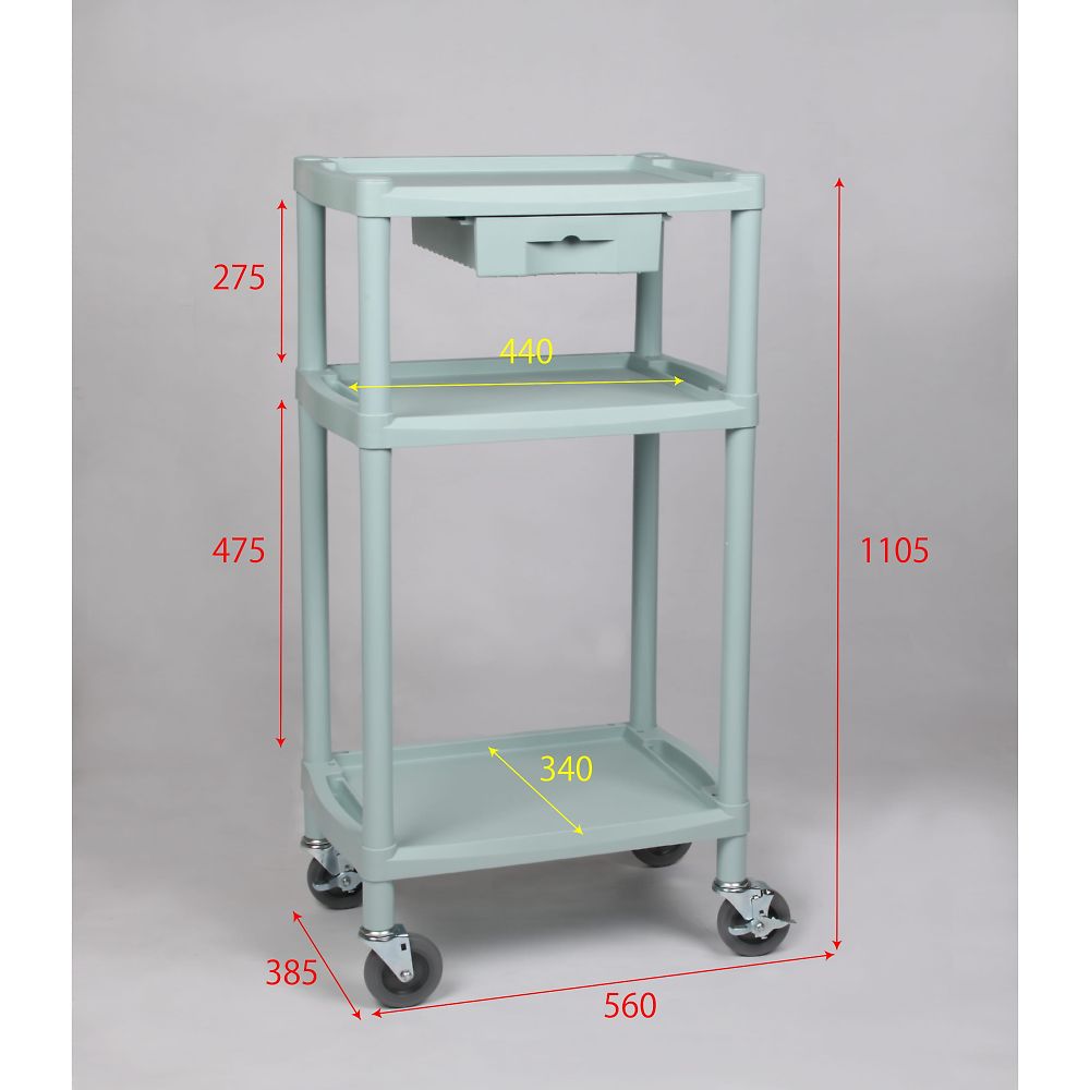 プラスチックワゴン3段 引出し1個付き 560×385×1105mm