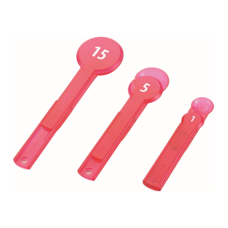 片手で簡単に計量できるスプーンです。1/2や1/4も手軽計量できます。耐冷耐熱温度:-20~90℃材質:ABS樹脂容量:1ml/5ml/15ml品番:052272