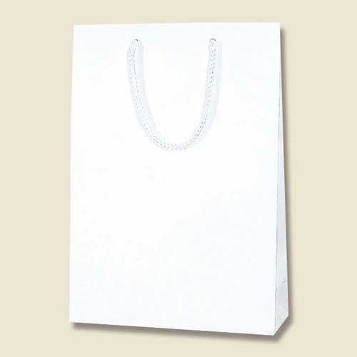 手提げ紙袋(白 ストライプエンボス・ポリエステル紐)