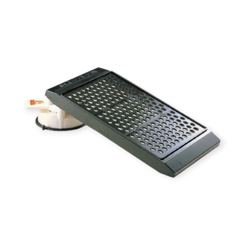 レバー操作で着脱自在の大型吸盤(φ100mm)がおろし板をガッチリ固定し、安定した作業を助けます。おろし面がおおきいので手加減が自由自在、なんでもおろせる万能タイプです。材質:ポリカーボネイト品番:104012