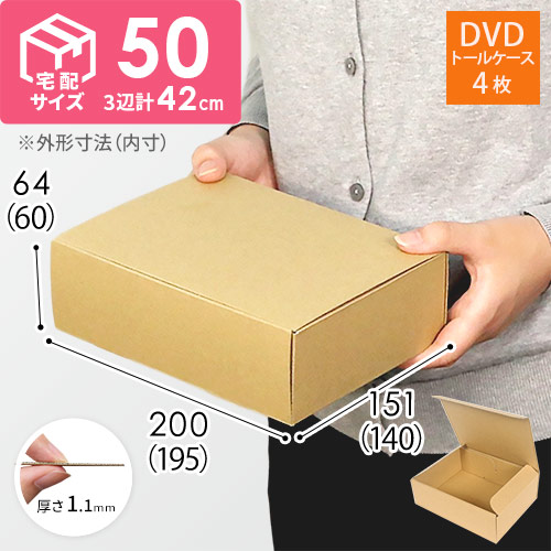 DVDトールケース(縦190×横136×厚さ14mm)を寝かした状態で4枚梱包できる段ボールケースです。