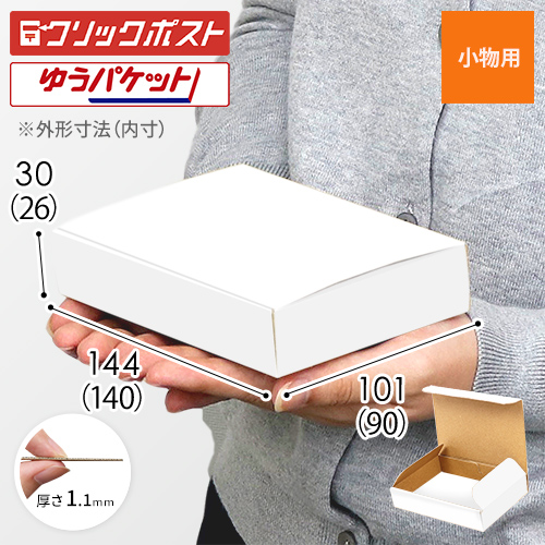 郵便局「クリックポスト」で送ることのできる最小サイズのはがき大サイズの段ボールケースです。