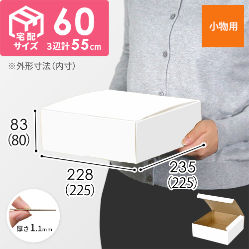 内寸225×225×80mmの、底面が正方形のダンボールケースです。