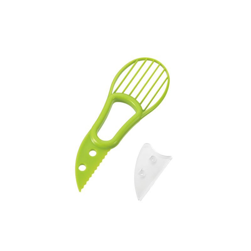 3ステップで手早く簡単にアボカドのカットが可能。皮むきとスライスがこれ一つで完成します。キャップ付で安全収納。サイズ:180mm材質:[本体]ABS樹脂、[キャップ]ポリプロピレン180mm