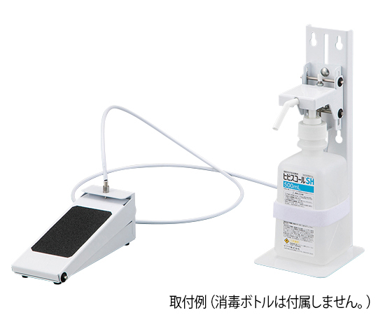 ●病院の壁面に取り付けられる足踏み式の消毒ボトル噴霧器です。