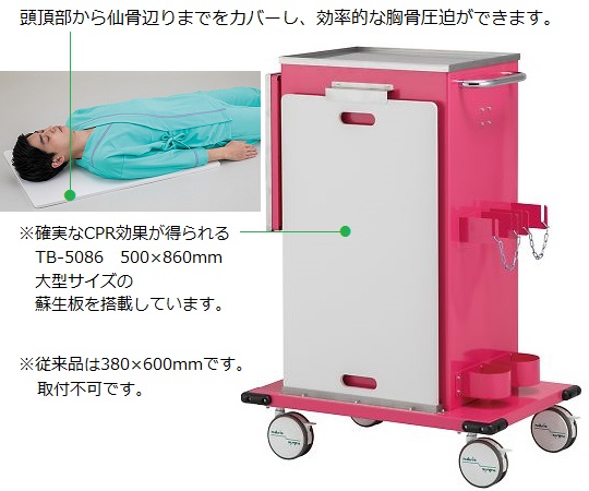●確実なCPR効果が得られる500×860mmサイズの蘇生板を搭載しています。