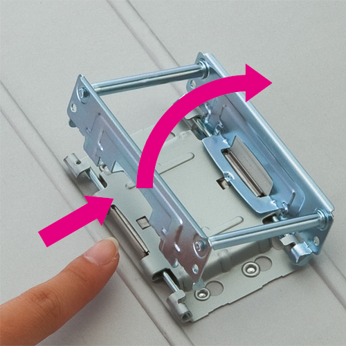 ●ワンプッシュオープンのとじ具を使用。両開き式なので、抜き差し頻度の高い書類の保管に便利。