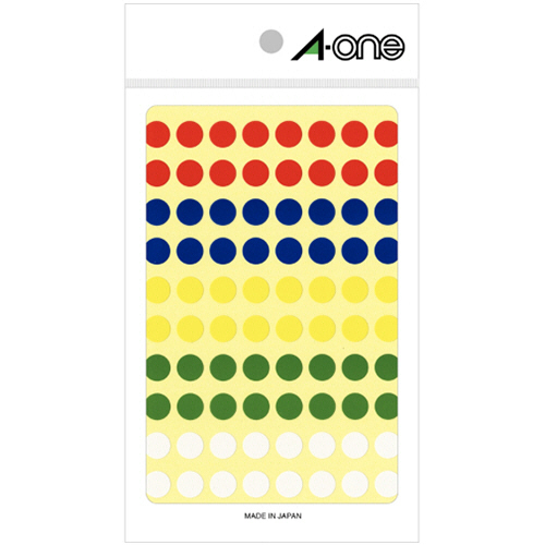 カラーラベル 丸型 直径9mm アソートタイプ 5色 1パック(880片:80片×11シート)