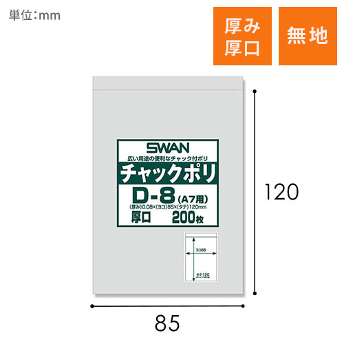 小物や雑貨の整理に便利なチャック付きポリ袋。丈夫な厚口タイプで、A7判対応サイズです。食品衛生法規格基準に適合しています。