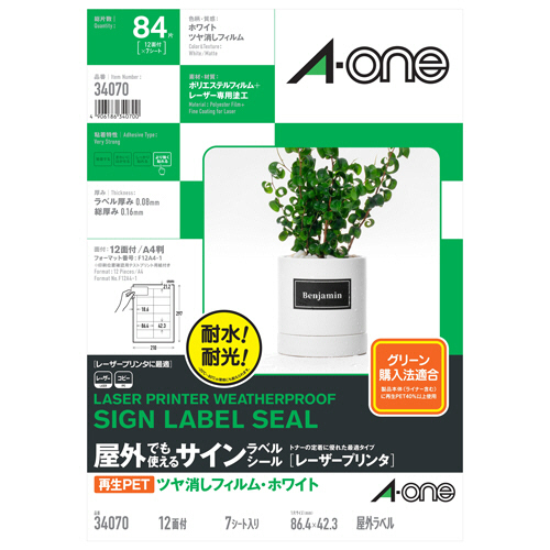 素材に再生PETを使用した、レーザープリンタでの印字適性に優れたラベルシール。