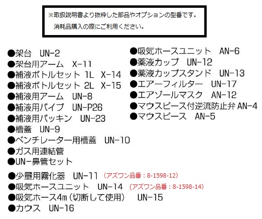 ●付属品:薬液カップ×2個、エアフィルター×2個、呼気ホースユニット×1本、マウスピース×1個、保護カバー×1個、ダストカバー×1枚