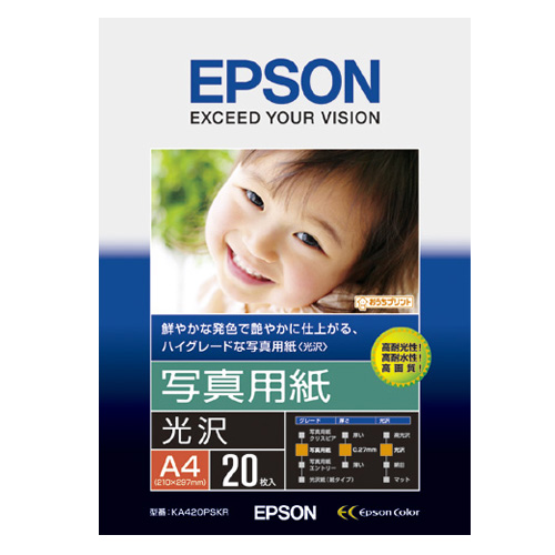 ●保存性にすぐれたEPSON純正の写真用紙、A4 20枚入です。