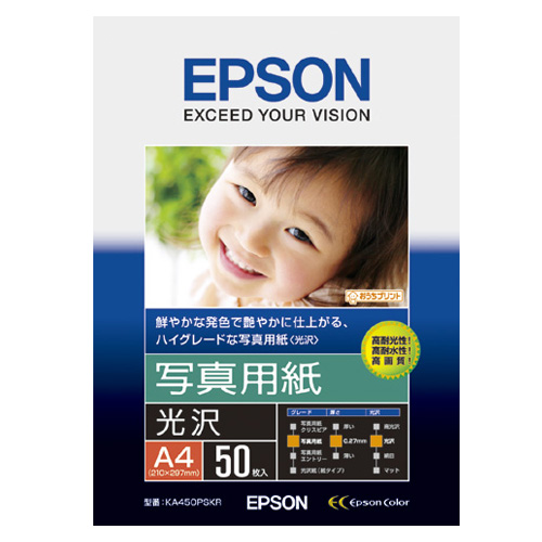●保存性にすぐれたEPSON純正の写真用紙、A4 50枚入です。
