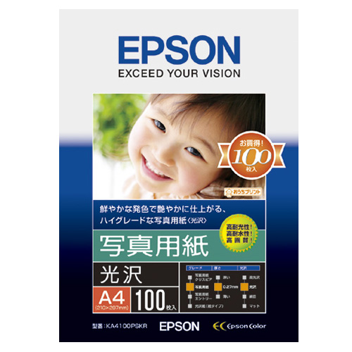 ●保存性にすぐれたEPSON純正の写真用紙、A4 100枚入です。