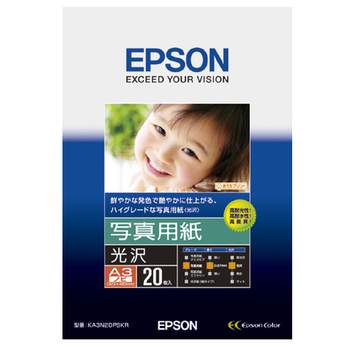 ●保存性にすぐれたEPSON純正の写真用紙、A3ノビ 20枚入です。