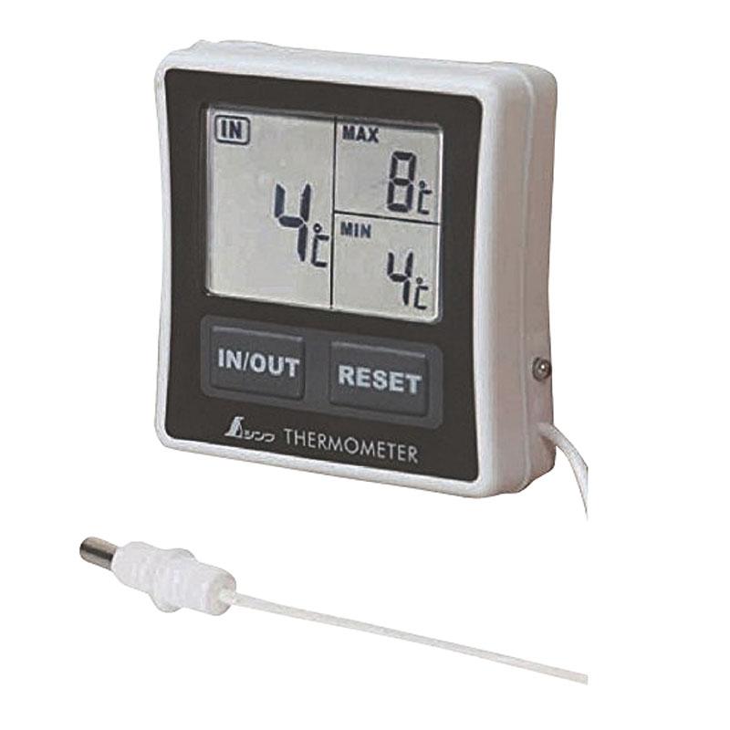 冷蔵庫内外の温度を切り替え表示できます。最高・最低・現在温度を同時に表示します。防水仕様。スタンド、マグネット、フック穴があるので、様々な場所に設置可能です。材質:[本体]ポリカーボネイト・ABS樹脂メーカー品番:602720