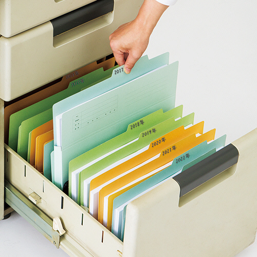 ●マチ幅30mmの持ち出しフォルダー、色はグリーンです。