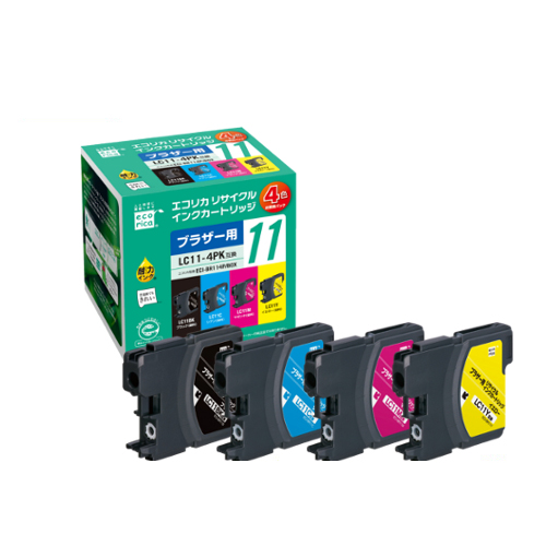 リサイクルインク [ブラザー:LC11-4PK互換] ECI-BR114P/BOX 1箱(4個:各色1個) 【5-8営業日遅延】