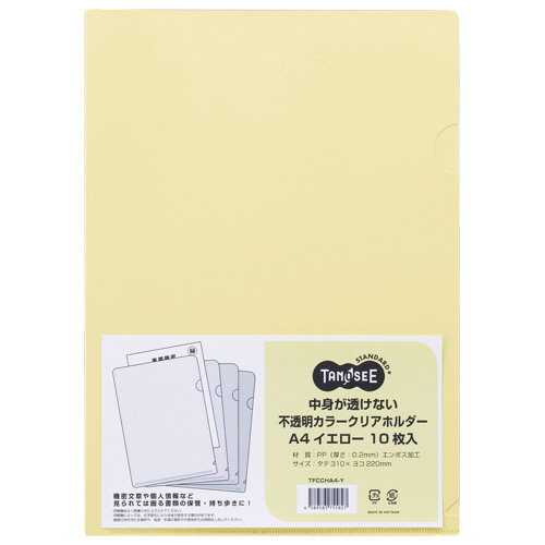 中身が透けない不透明カラークリアホルダー A4 イエロー 1セット(100枚:10枚×10パック) 【5-8営業日遅延】