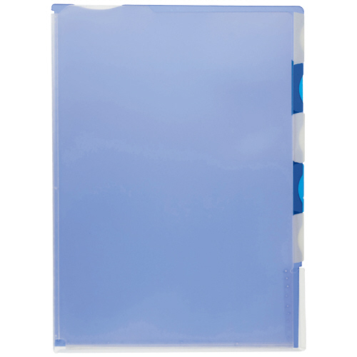 ●A4タテ、ブルーの丈夫なマチ付きクリアホルダー5山インデックスタイプ5枚です。