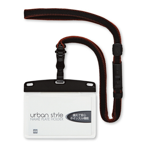 ワンタッチで取り外しができる脱着式。防災・防犯に備えるホイッスルが標準装備。