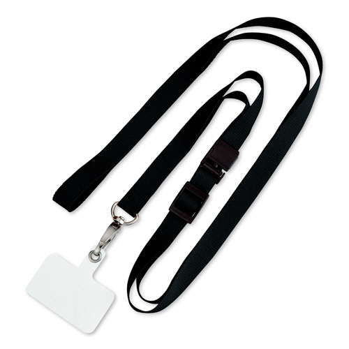 ●落とさず安心、なくさず安心。たすき掛けができて持ち運びが簡単。黒のロングストラップです。