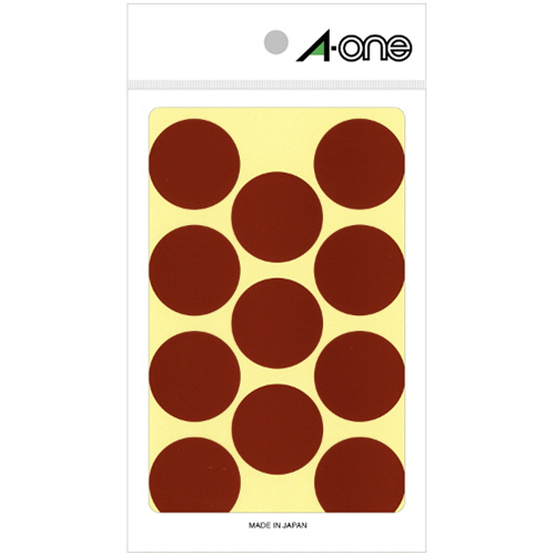 ●直径30mm・茶の丸型カラーラベル、154片入(11片×14シート)です。