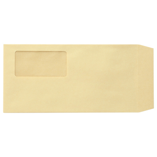 ●のりなしクラフトの長3窓付き封筒。窓の材質は分別なしで廃棄できるグラシン紙。
