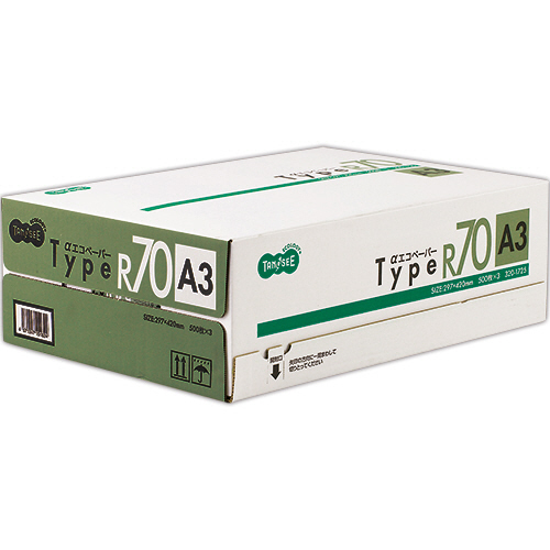 ●古紙配合率70%を保ち、白色度80%で仕上げた再生紙のA3 500枚×3冊入です。