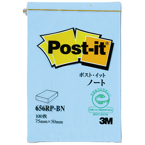 ポスト・イット ノート 再生紙 75×50mm ブルー 1冊