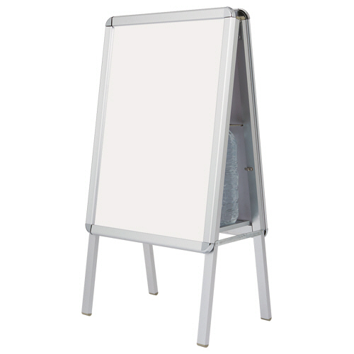 転倒防止機能付のアルミ枠ポスタースタンド。