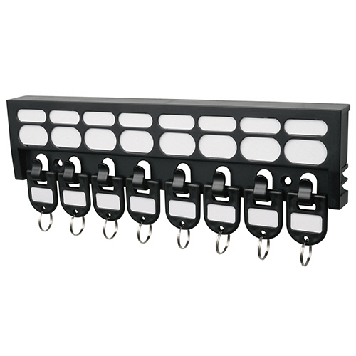 ●マグネットでスチール面に取り付け、ネジで壁面への設置も可能な8個吊のキーハンガー、ブラックです。