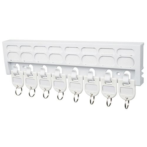 ●マグネットでスチール面に取り付け、ネジで壁面への設置も可能な8個吊のキーハンガー、ホワイトです。