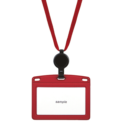 吊下げ名札 リール式 レザー調 ヨコ名刺サイズ 赤 1個 【5-8営業日遅延】