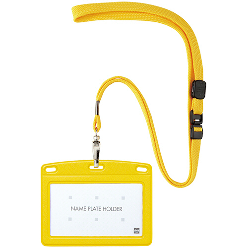 ●ヨコ名刺サイズのレザー調吊り下げ名札、色は黄です。10個セット。
