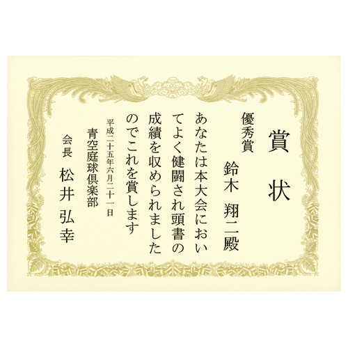 美しい金刷印刷の賞状!!