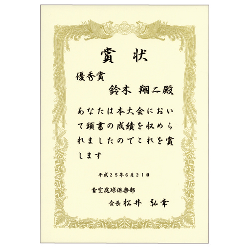 美しい金刷印刷の賞状!!