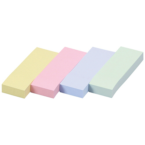 パソコンや電話、キャビネットなどの樹脂面や垂直面にもしっかり貼れて、はがれにくい強粘着タイプ。パステルカラーのふせんサイズ。