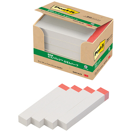●古紙パルプ配合率100%の環境ふせん。75×12.5mm、ホワイト(赤帯入)の20冊です。