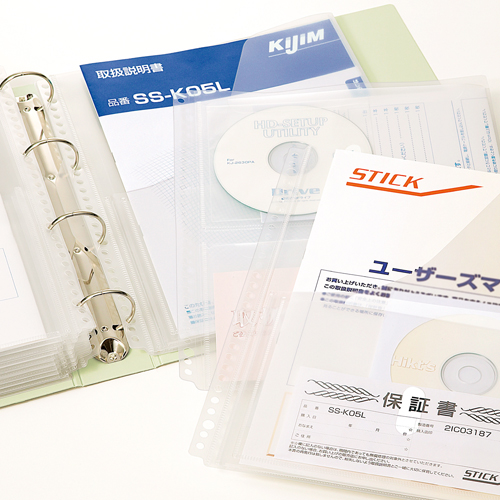 【差替式】ポケットの差し替え・追加が簡単な、4穴リング式とじ具を採用。
