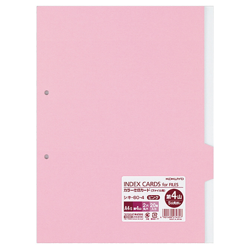 カラー仕切カード(ファイル用・5山見出し) A4タテ 2穴 第4山・ピンク 1パック(20枚)