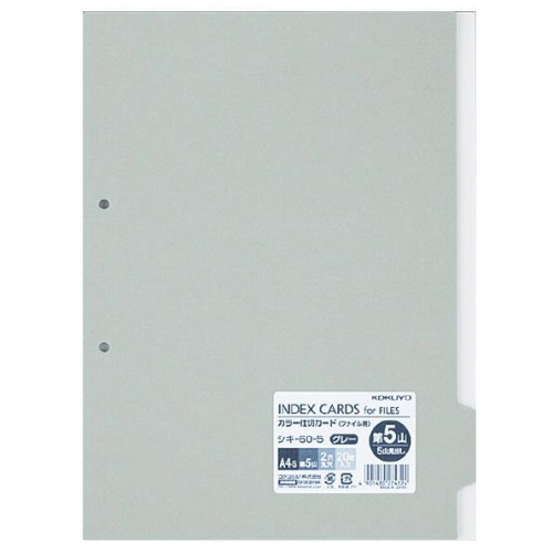 カラー仕切カード(ファイル用・5山見出し) A4タテ 2穴 第5山・グレー 1パック(20枚)