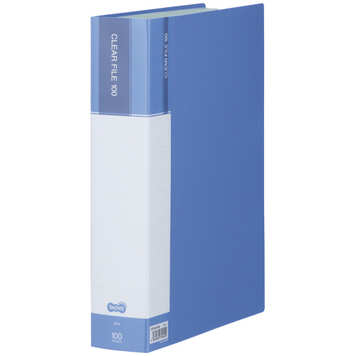 ●0.05mm厚の丈夫なポケット!A4タテ、100ポケット、ブルーのクリアーファイルです。